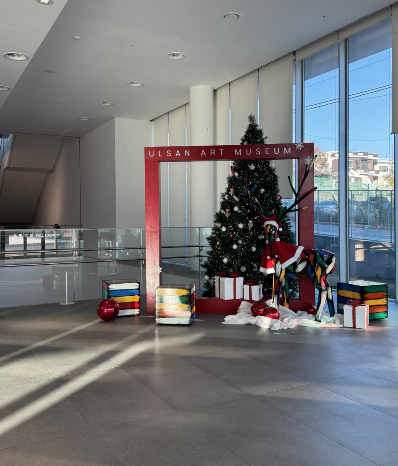 크리스마스를 맞이하여 울산시립미술관에서 요청하신 김우진 작가의 한 발짝 더 가까이 작품을 주제로 한 크리스마스트리 포토죤을 작업하였습니다.